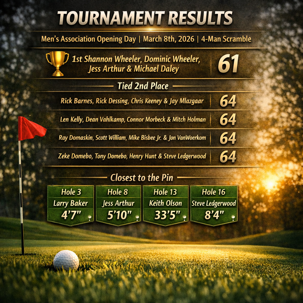 2018 MEN’S CLOSING DAY FINAL RESULTS