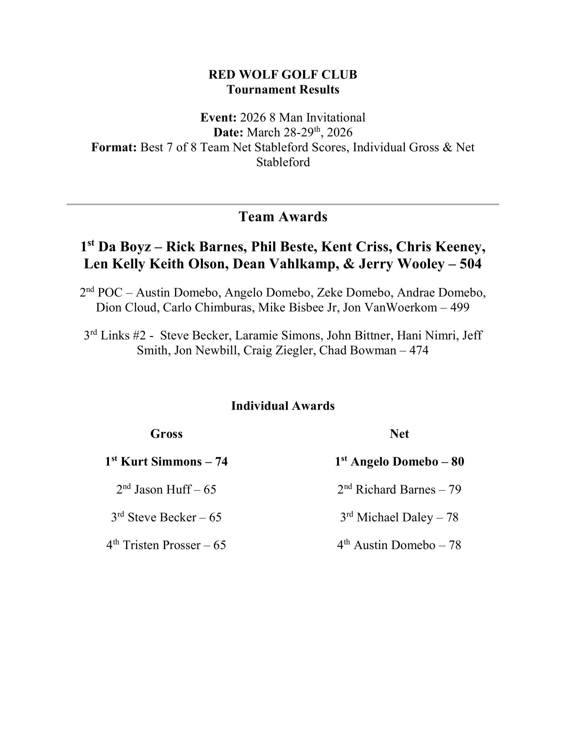 Tournament Results 2026